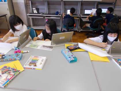 昨日の総合的な学習の時間の様子です。今までのつばめの学習を自分なりにまとめようということで,コンピューター室に来ています。つばめの画像をプリントアウトしたり,つばめについて書かれているページを写したり,中にはWordを使って,内容をまとめていたりする子もいます。この時間は,教師は簡単な助言だけで,まとめる方法については,しっかりと自分自身で考えて学習する時間にしています。「どうしたらいいの?」と悩んでいる子もいますが,教師からの助言や友達のアドバイスを聞いて,自分なりの方法を見つけてもらいたいと思っています。