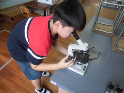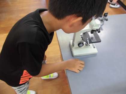 顕微鏡を使って
