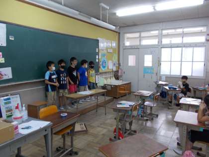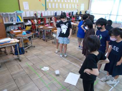 今日は待ちに待ったお楽しみ会。遊び係が約1か月前からコツコツと遊びを考えてくれました。準備に少し時間がかかり遊ぶ時間が短くなってしまいましたが,みんな楽しんで遊んでいました。遊び係さん,ご苦労様でした!