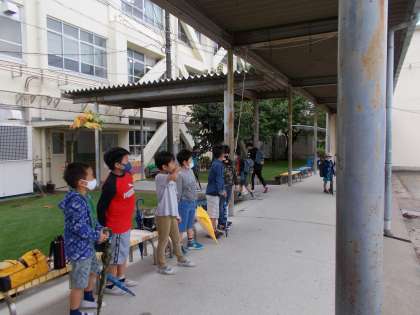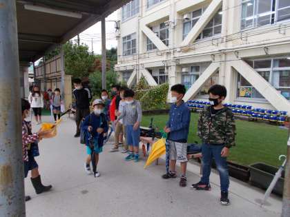 今日は雨だったので,渡り廊下でのあいさつになりました。少し寒かったですが,最後まで頑張ってくれました。お疲れさまでした。