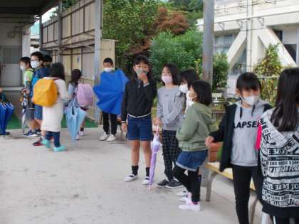 今日であいさつ運動最終日です。昨日に引き続き,あいにくの雨です。そのため渡り廊下で元気よくあいさつをしました。あいさつ週間をいかして,来週からあいさつができる三年生を目指していきます。