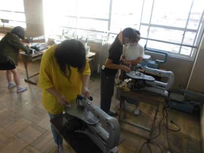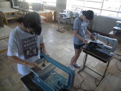 4年生の時には,のこぎりを使って,木を切りましたが,5年生の図工の学習では,電気のこぎりを使って,木の板を切りました。指を怪我しないように,安全に気を付けて,ゆっくりじっくり取り組みました。だんだん慣れてきてスムーズに切ることができるようになりました。