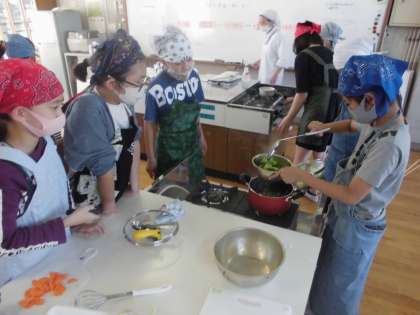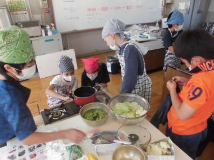 火加減や野菜の切り方,ゆでるタイミングや時間などを意識しながら,班のメンバーと協力をして,ゆで野菜サラダを作ることができました。子どもたちは,前回よりも手際よく,準備や片付けも上手にできるよう工夫をしていました。