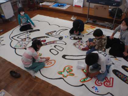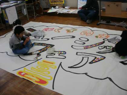 そこで,今年もそのステージバック(舞台)に貼るステージバックを作成し始めています。