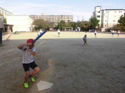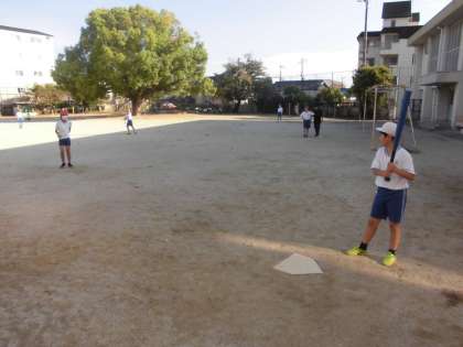 ヒットをうまく打つコツは,ボールをよく見ること,バットをタイミングよく振ること,打ったらすぐに走ることなど,子どもたちは,ゲームを通して,いろいろ工夫をして頑張っています。今後の白熱した試合ができることを期待しています。