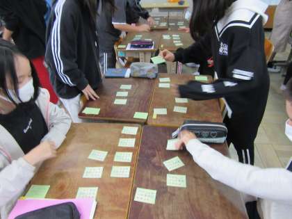 毎日,百人一首を続けています。係の子が中心となって声かけをしてゲームを始めています。