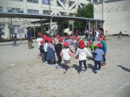 火曜日に第一回目のみんなあそびで「はないちもんめ」をしました。