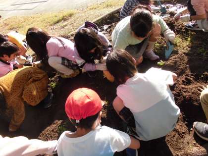 つるから離れて埋まっているさつまいもを一生懸命探していました。