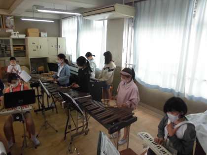 それぞれのパート練習の成果が発揮され,全体で合わせると,素敵なハーモニーとして,音楽室いっぱいに響いてくるようになってきました。大太鼓や小太鼓などの打楽器がリズムをとり,鉄琴や木琴なども素敵な音色が響いてきまいた。それぞれの楽器の音色がうまく重なり,素敵な合奏ができればと思っています。