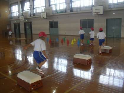 とぶ・のぼる・あるく・わたるなどの動きを,まねっこして遊びました。