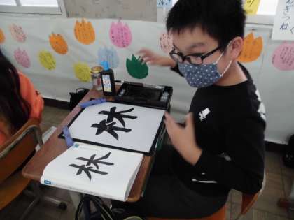 へんとつくりのバランスに気をつけて,「林」という字を書きました。