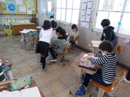 今日の国語「すがたをかえる大豆」では,図書室の本から,大豆以外にすがたをかえる原材料はどんなものがあるのか,そしてそれはどのような工夫をしてどんな食品になるのかというのを探し,自分で「すがたをかえる大豆」のようにまとめるという学習をしました。