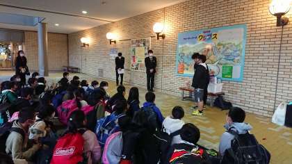 検温をした後,ホテルの方の話をしっかりと聞いています。
