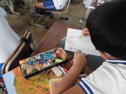 それぞれから得られるインスピレーションをもとに,絵をかき,自分の曲への想像をふくらませました。