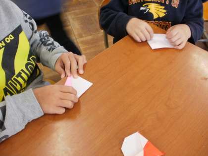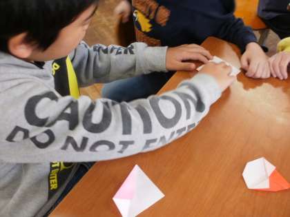 折り紙アート!〜今度はなにかな? 公開日 2020/11/13 更新日 2020/11/13 くすのきの部屋 折り紙アート,秋の次は何でしょう?? お楽しみにしていてくださいね☆ 折り紙を毎週折るようになってから,自然と教えあう姿も出てきているくすのき学級です。