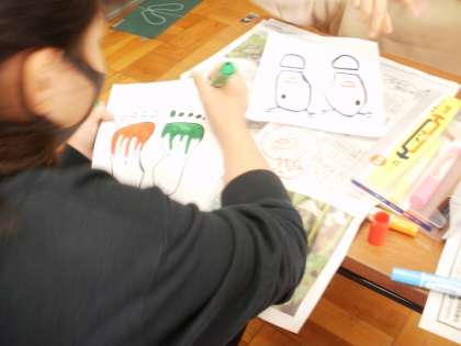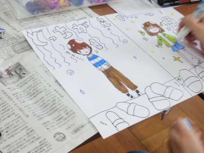ところで,写真のようすは,トイレのスリッパが乱れていることが多い!という声が多かったので,ポスターや足型の絵を作成しているところです。