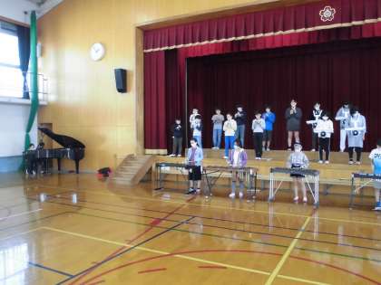 今週は,体育館でリコーダーの演奏や合唱・合奏などの練習を行いました。ステージでの移動や並び方,言葉の練習なども行いました。互いに良い所や表現の工夫などを参考にしながら,自分たちの演技に磨きをかけていきたいと思います。