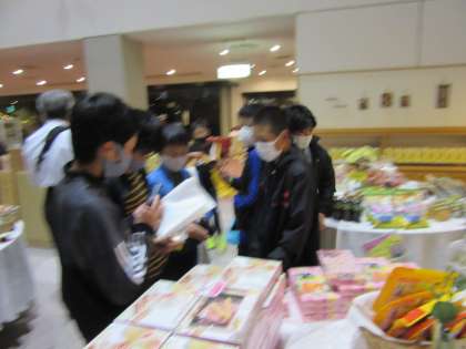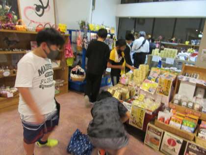 お土産選びはお風呂と入れ替わりで,男子の番になりました。交代でおみやげを買いました。