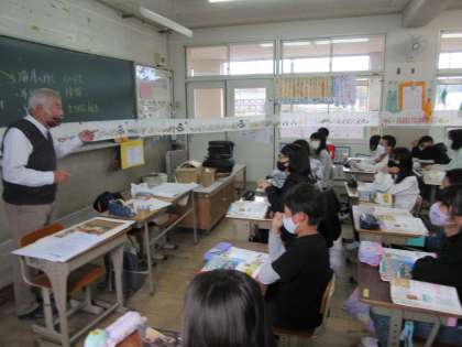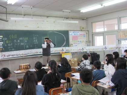 朝鮮通信使の資料を使って,早川先生に授業をしていただきました。絵巻物の資料から見つけたことを交流しました。