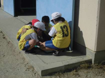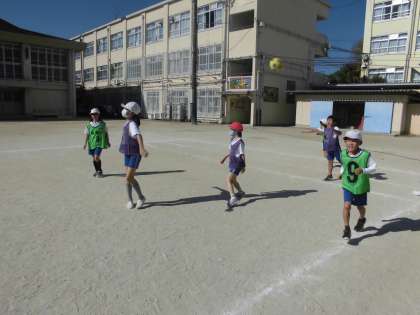 体育 エンドボール part2 公開日 2020/11/19 更新日 2020/11/19 3年生の部屋 まずはルールに慣れ,チームの特徴を知るということがねらい1になります。そしてそれを知ったうえで,どういう作戦にしていくのかというのがねらい2です。 思う存分動いて,運動の楽しさを思う存分味わってもらいたいと思います。 ※2組の写真です。