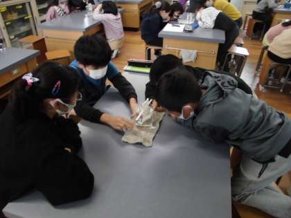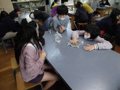 ものが水に溶けると見に見えなくなることに気づいた子どもたちは,見えないけれど味があるといったことから,見えないけれど水の中にはあるはずということを意識していました。そこで,2つの疑問が出てきました。一つ目は,見えないけれど重さはあるのだろうか?,二つ目は,見えないけれど,体積はあるのだろうか?といった疑問です。これからの実験で,問題が少しずつ解決していければと思います。