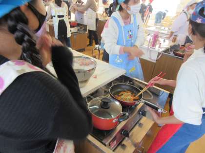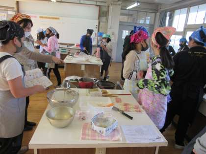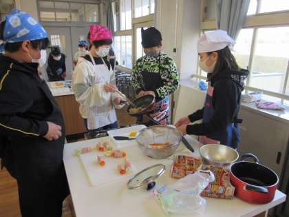 木曜の3・4校時に調理実習をしました。「ベーコン巻」を作りました。