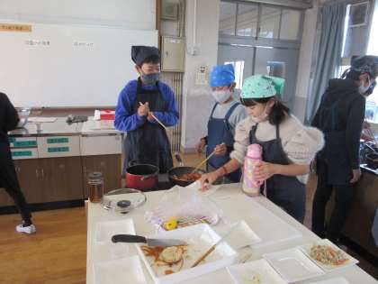 グループで協力して,時間内に調理実習をやり遂げることができました。3・4校時に実施したにも関わらず,給食もしっかり食べました。