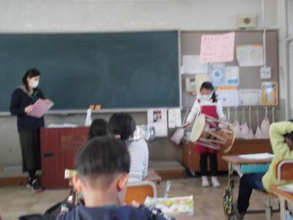 音楽の授業で,学習発表会で発表した太鼓のリズムのテストをしました。