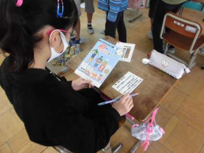 書写の時間には,新年のあいさつでもある年賀状を書きました。住所や郵便番号などの書き方や名前の書き方などを学習し,丁寧に書きました。裏面には,挨拶の文やかわいいイラストなどを一生懸命に書く姿が見られました。