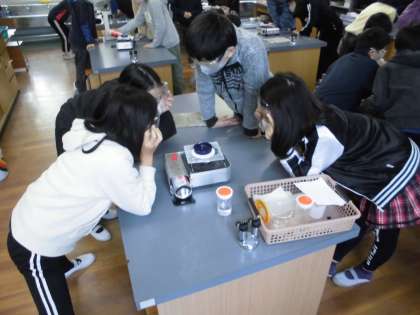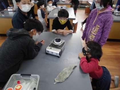 水溶液の水を蒸発していくと,蒸発皿の中に白い粉状の物質が出てきました。子どもたちは,おそらく初めに溶かしたミョウバンが再び出てきたのだと考えていました。