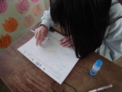 まっすぐにのびているところと,ゆれているところを聴きながら,歌詞に線を書き込みました。