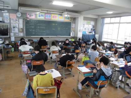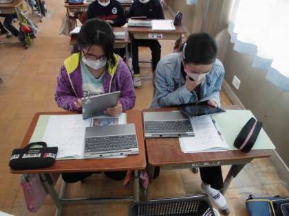 キュビナというアプリを使って,算数の復習問題を解きました。タッチパネルに文字を書いたり,計算をしたりして,答えをAIが判定し,正答の場合は次の問題へ,誤答の場合は再度同じような問題が出されるといった形ですすんでいきました。自分のペースで個別学習が進んでいくので,子どもたちはじっくりと学習できたようです。