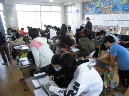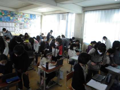 タブレットを使っての学習の進め方を6年生に教えていただきました。パソコンを開くための個人IDやパスワード,またキュビナを開くためのIDとパスワードが必要になります。ご家庭からも「キュビナ」にログインすることで,今までの学習の復習やテスト対策など,AIが最適な問題を出題してくれる学習ができるようですので,冬休みの期間などを活用して,子どもたちと一緒にキュビナでの学習にチャレンジしてほしいと思います。