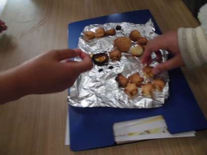 クッキーの真ん中(空いているところ)に,なんと砕いた飴ちゃんを入れる!