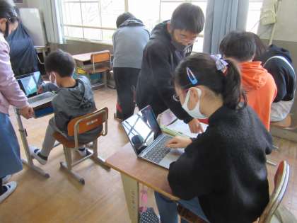 この写真は12月の様子ですが,算数の時間に「キュビナ」算数ソフトを1人1台使って学習している様子です。子どもたちは,自分のペースでコンピューターが示す問題に取り組み意欲をもってがんばっています。卒業まで,たくさん活用していく予定です。