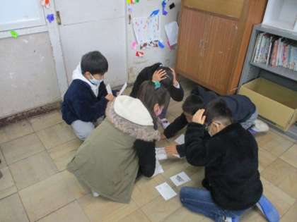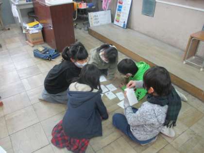 今日は子ども達で作った音訓かるたでかるた大会をしました。ゲームをしながら楽しくとお友達が作ったかるたを見ることができました。