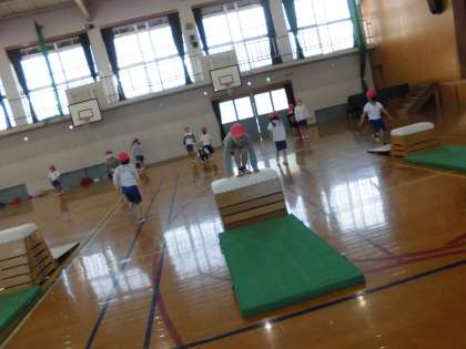 とび箱の学習が始まりました。 色々なとび方の練習をしています。