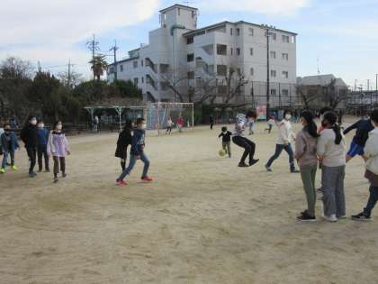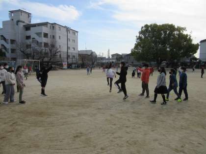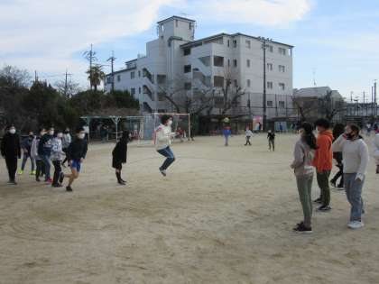 今日の昼休みに,6年1組の子どもたちは大縄跳びをしていました。長いなわを教室に置くようになってから,自分たちですすんで遊んでくれています。今日の寒さは少し和らいだので,参加する子が多かったです。