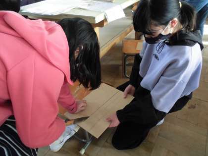 図工室の音は木とのこぎりがこすれる音が響き渡っています。