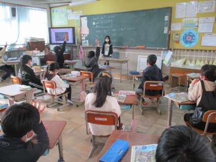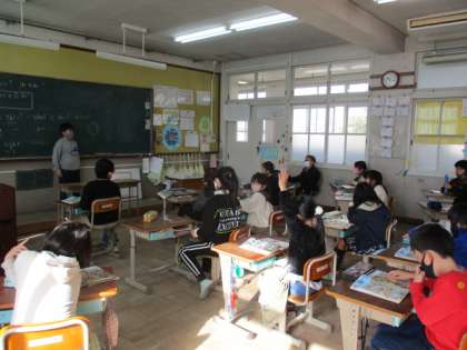 今日の外国語は「What's this?」の言い方に親しみました。何かを指して,「What' this?」と聞かれると,「It's 〜」と答える会話をたくさん楽しみました。子ども達はみんな意欲的に問題を出したり,答えたりしました。