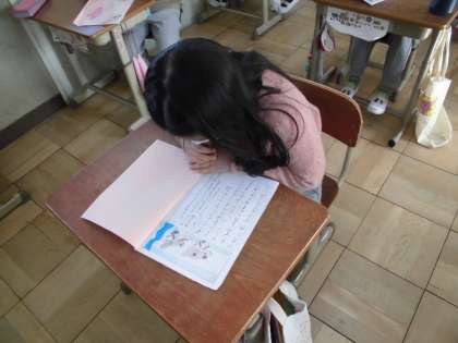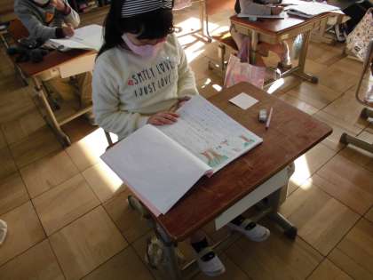 自分たちで考えていた,お話が完成しました! お互いの作ったお話を楽しく読んでいます。