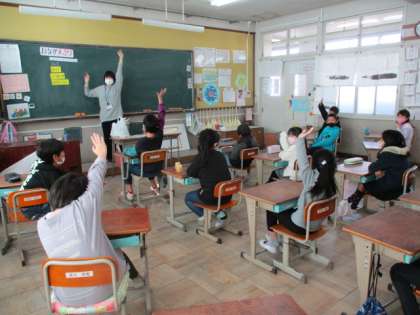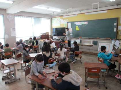 1組は先週の水曜日,2組は今日,栄養教諭の中島先生による食の学習がありました。今回は『食物繊維について』学習しました。食物繊維は,おなかの中を掃除してくれる大切なもの,そしてその食物繊維は,野菜・豆・果物・海藻・きのこ・いもに多く含まれているなどといったことを教えてもらいました。