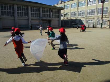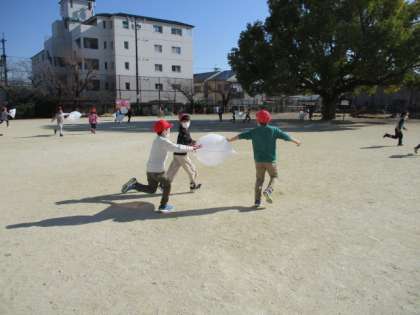 かぜと友だち 公開日 2021/01/22 更新日 2021/01/22 1年生の部屋 袋の中に風を集めて,冬を感じることが出来ました。 たくさん走ると風が集まることに気づいて,発見していました。 とっても楽しそうに風を集めていました。