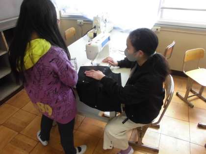 家庭科の時間には,ミシンを使ってランチョンマットをつくっています。初めてのミシンを使っての作品ということもあってドキドキしながら作り始めています。子どもたちは,ミシンで縫うところに印をつけたり,待ち針などの使い方なども確認したりしました。どんな作品ができるか楽しみです。