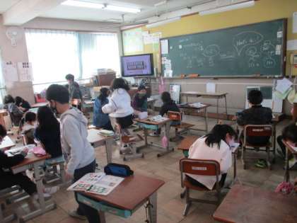 子ども達は知っている英語を駆使してヒントをたくさん出しました。英語がわからない時は友達や先生に聞き,積極的にヒントを出すことができました。