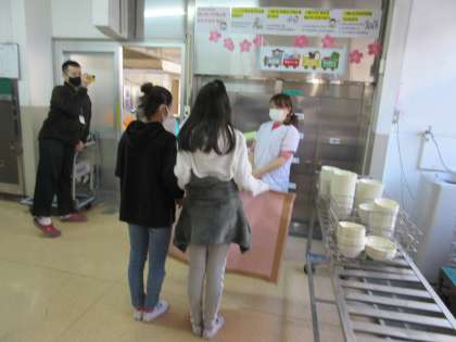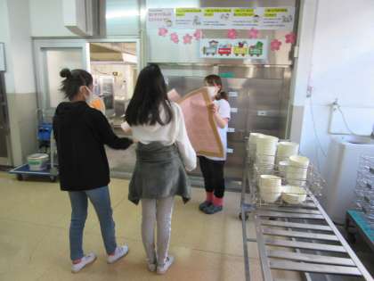 「6年間,おいしい給食ありがとうございました。」学級代表の人が,給食調理員さんに感謝の言葉を伝えました。また,学級みんなで書いた寄せ書きをプレゼントとして渡しました。卒業まで,小学校の給食を食べることも,あと少しとなりましたが,心をこめて作ってくださった給食を味わって食べたいと思います。