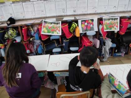 図工で春の花を描きました。