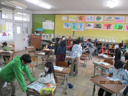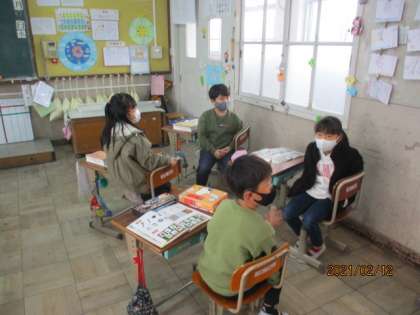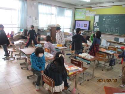 今日も外国語の学習は『What's this?』,漢字クイズと足跡クイズをしながら「What's this?」の言い方に慣れていきました。最後にはペアでクイズの出し合いっこをして,楽しみました。ぜひご家庭でも「What's this?」といろいろ聞いてみてください。