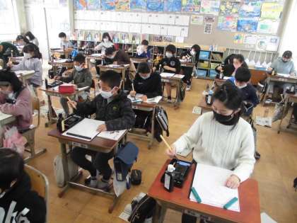 久し振りの習字の学習。いつも以上に子どもたちは集中して取り組む姿が見られました。今回は,文字の大きさに気を付けながら「登る」という字を書きました。はらいやとめなどの筆の動かしかたや始筆と終筆などにも気を付けながら頑張りました。