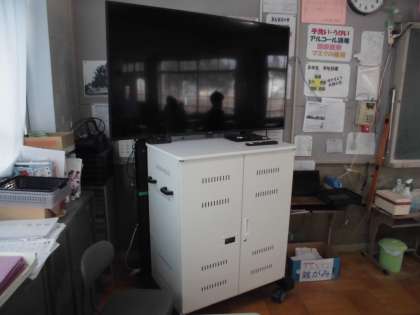 2月16日(月)には,教室の中のテレビなどが新しくなりました。また,教室に一人一台のタブレットの保管庫を置き,学習場面で手軽に活用ができるようになりました。教室のテレビも大型の新しい形のものに変わりましたので,これからの学習でより有効的に活用できればと思います。
